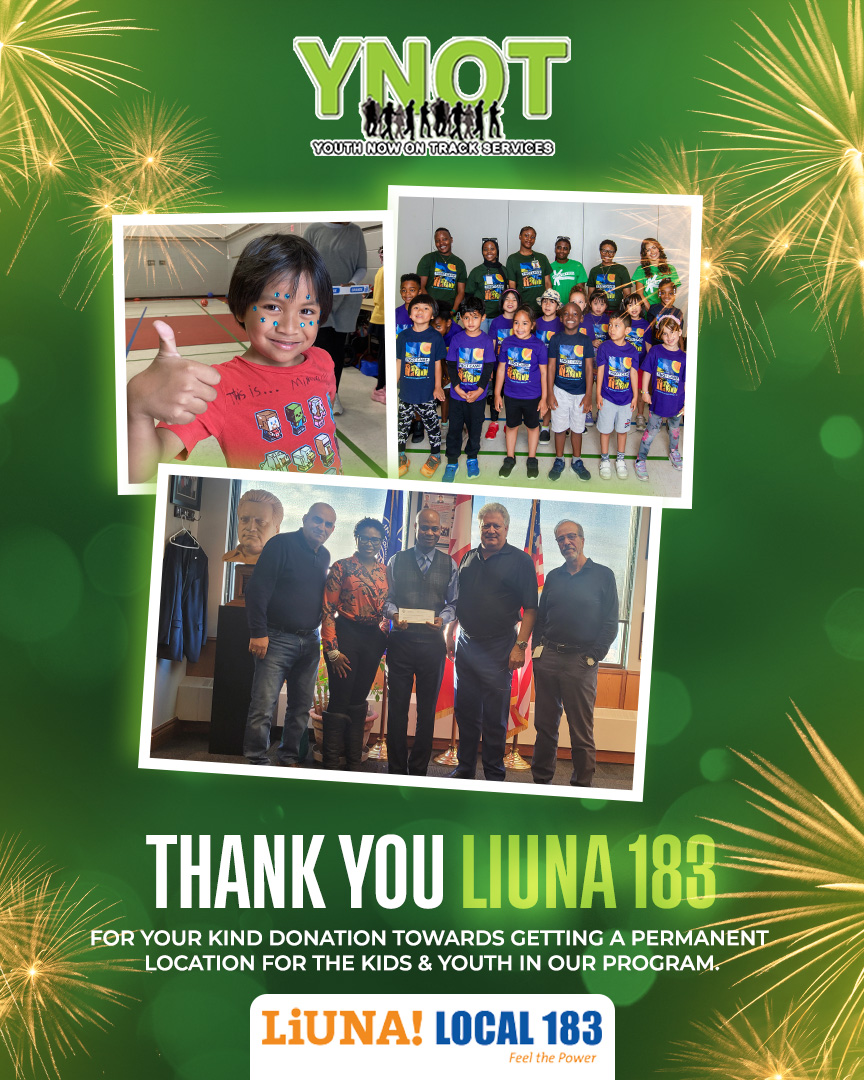 And a big thank you to Liuna 183 for a very significant donation to help to kick off getting a permanent location for YNOT Services.
